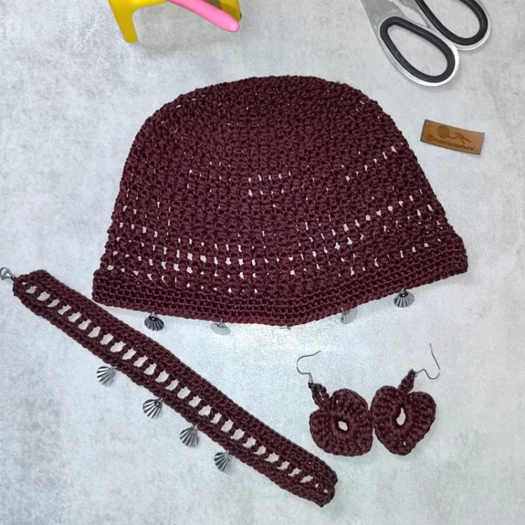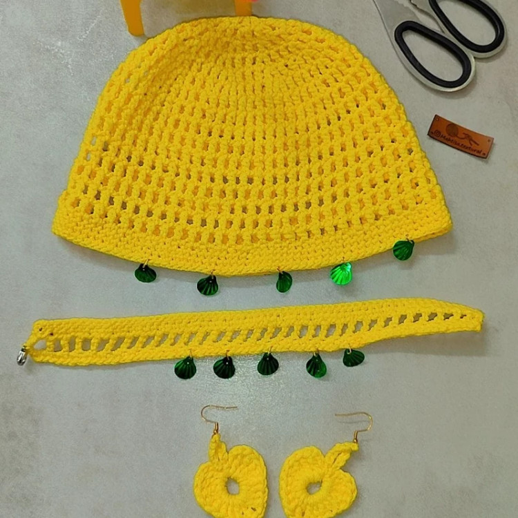 این ست شامل کلاه گوشواره و پابند می باشد قابل سفارش در رنگ دلخواه مکرومه تک ، کاملا سبک و خنک ضد حساسیت