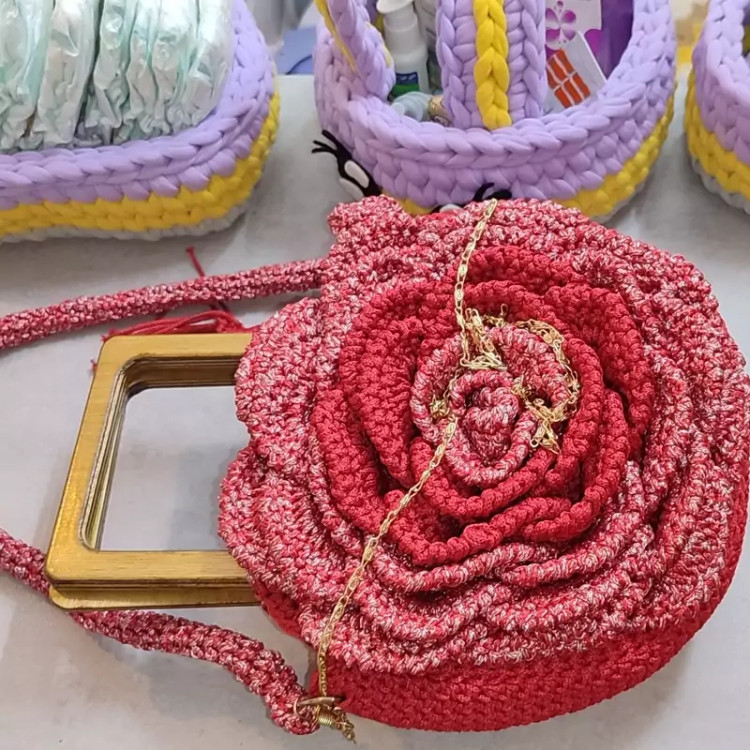 من یک هفته برای بافت این کیف زمان گذاشتم و از بهترین نوع نخ که ایستایی بالایی داره و نخ اسپرت دو رنگ به سبک خودم یافتم تا خاص تر باشه