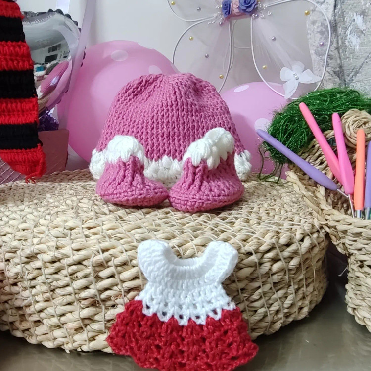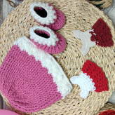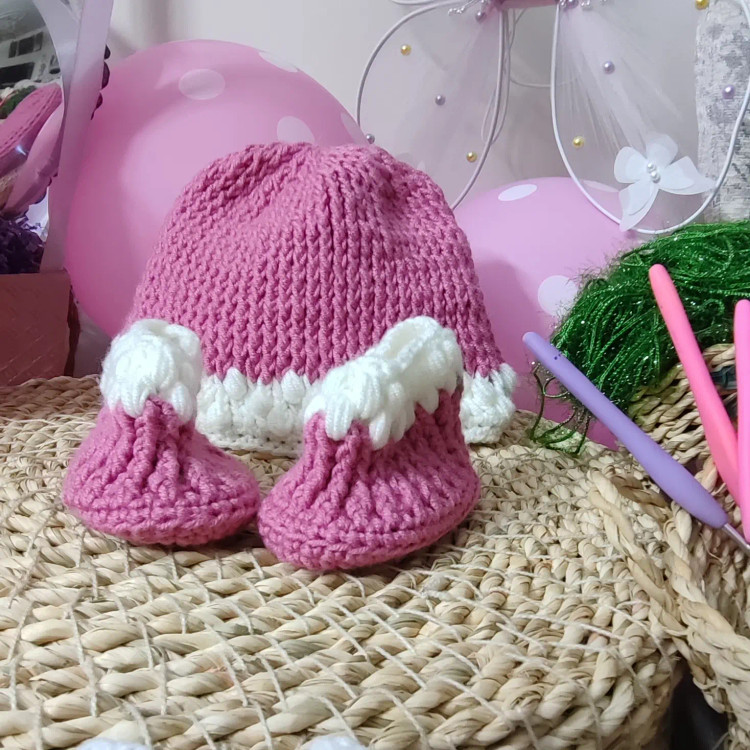 ست کلاه و پاپوش ماهتیسا صورتی سفید مدل فندقی کودکانه
