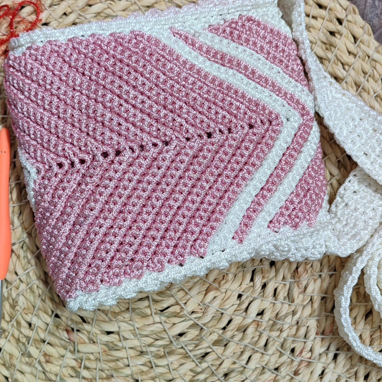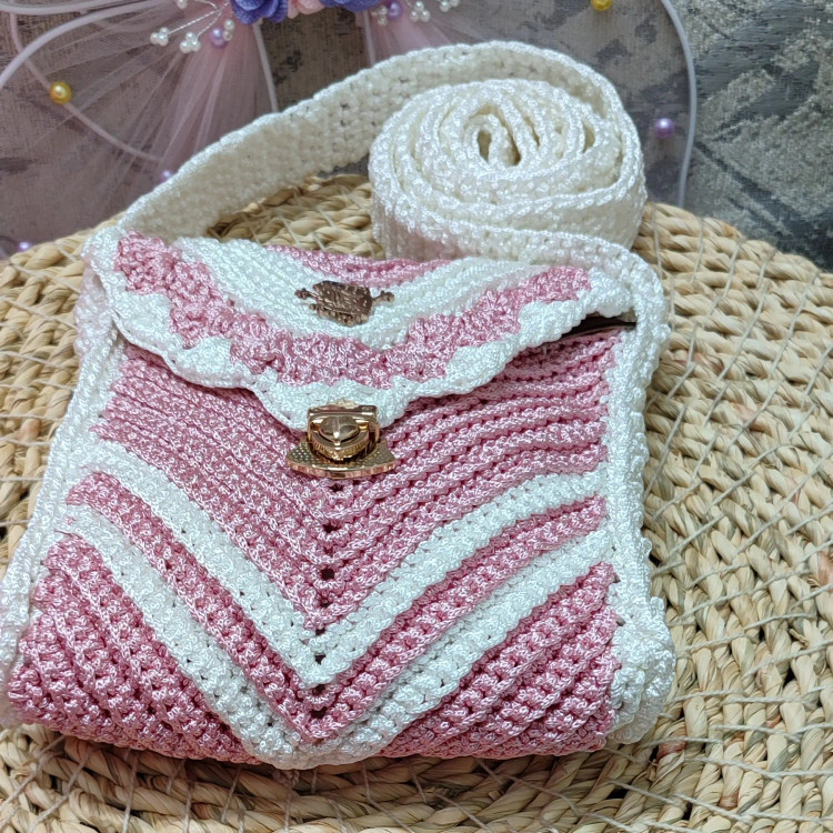کیف مکرومه شیار دار دارای قفل سگگ باب اسفنجی بلندی بند ۱۳۴ قابل حمل گوشی و لوازم ضروری و کیف پول