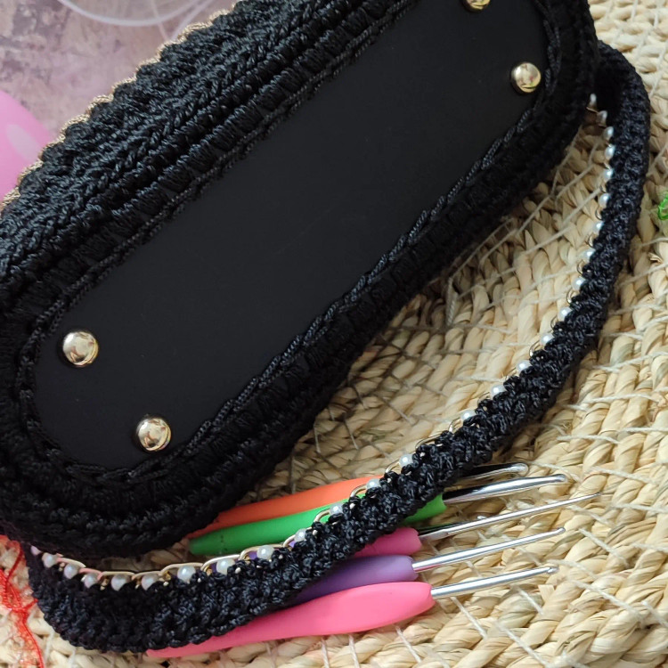 کیف مجلسی مکرومه دست بافت مدل گوجی کفی چرم