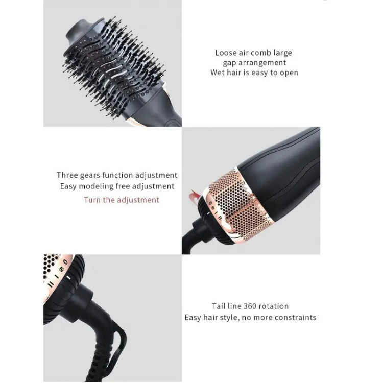 made in P.R.C این سشوار دارای 4 عدد سری است : 1- سری برس غلطکی بزرگ،2- برس شانه دار ، 3- متمرکز کننده ی هوا و 4- نازل حلقه ای